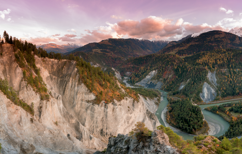 Il n’y avait pas encore d’humains dans la vallée de Flims, dans les Grisons, quand un gigantesque éboulement s’est produit, il y a plus de 9 000 ans. Les Alpes étaient recouvertes par les immenses glaciers du Quaternaire, qui entamaient alors leur recul sous l’effet du réchauffement du climat. C’est le retrait d’une énorme masse de glace, dans cette vallée où coule le Rhin, qui est à l’origine de l’effondrement d’au moins… 15 milliards de m3 de roches. Un volume exceptionnel. Modelés par la langue de glace, les versants de la montagne sont devenus instables quand le glacier s’est retiré. De plus, cette région est caractérisée par une fragilité tectonique : avant même le retrait glaciaire, les roches étaient fragilisées par de nombreuses failles. Depuis cette avalanche géante, le fleuve a creusé l’amas d’éboulis pour former le spectaculaire canyon de la Ruinaulta.
