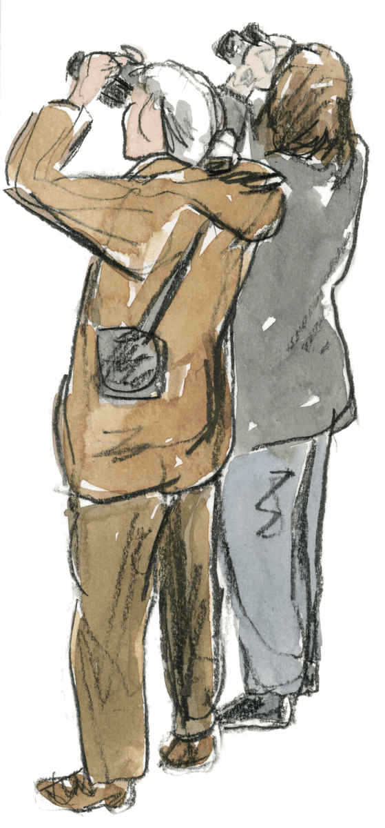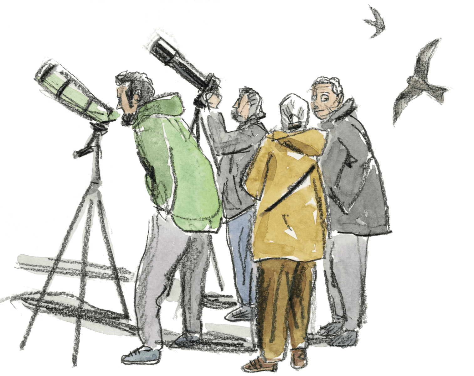 « Là-bas, un faucon ! » L’œil expert du peintre sculpteur détecte une silhouette furtive entre les bâtiments du quartier. Quelques petits cercles au dessus du XVe arrondissement et l'oiseau s’éclipse déjà. Tsunéhiko Kuwabara vit entre Paris et Tokyo et prend un réel plaisir à croquer la nature urbaine. C'est lui l'un des découvreurs de ce couple de pèlerins, le premier de la capitale depuis 150 ans.
