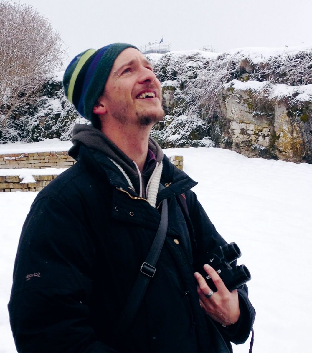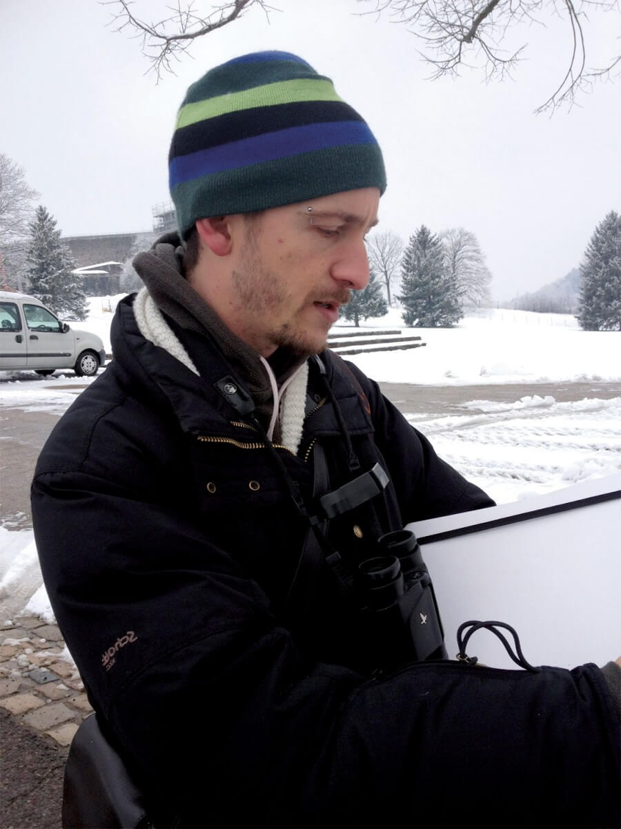 C'est un peu à cause du tichodrome que Nick Derry a choisi de s'établir ici. Cet Anglais âgé de 30 ans est un artiste qui croque, qui peint, qui colle et qui dessine les oiseaux. Il m'attend devant la gare. Profil de tagueur, œil pétillant, piercing sur le sourcil. On traverse la ville à grandes enjambées pour en venir très vite à quelques confidences.