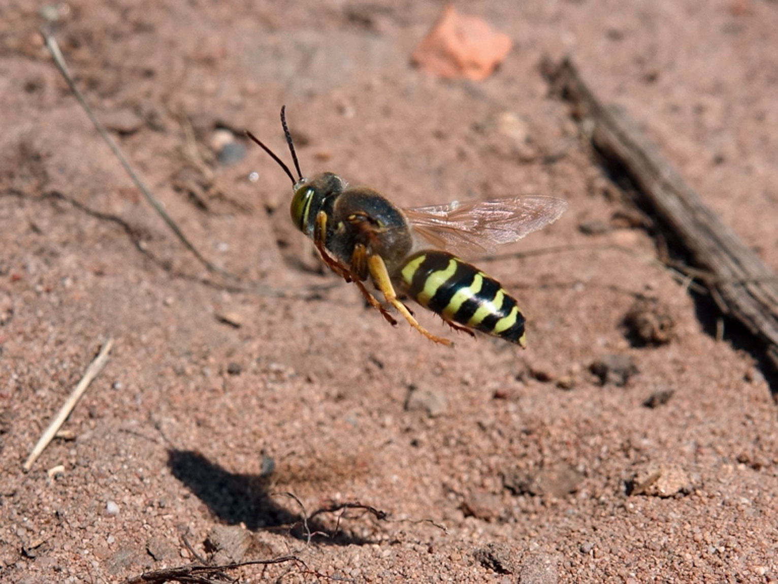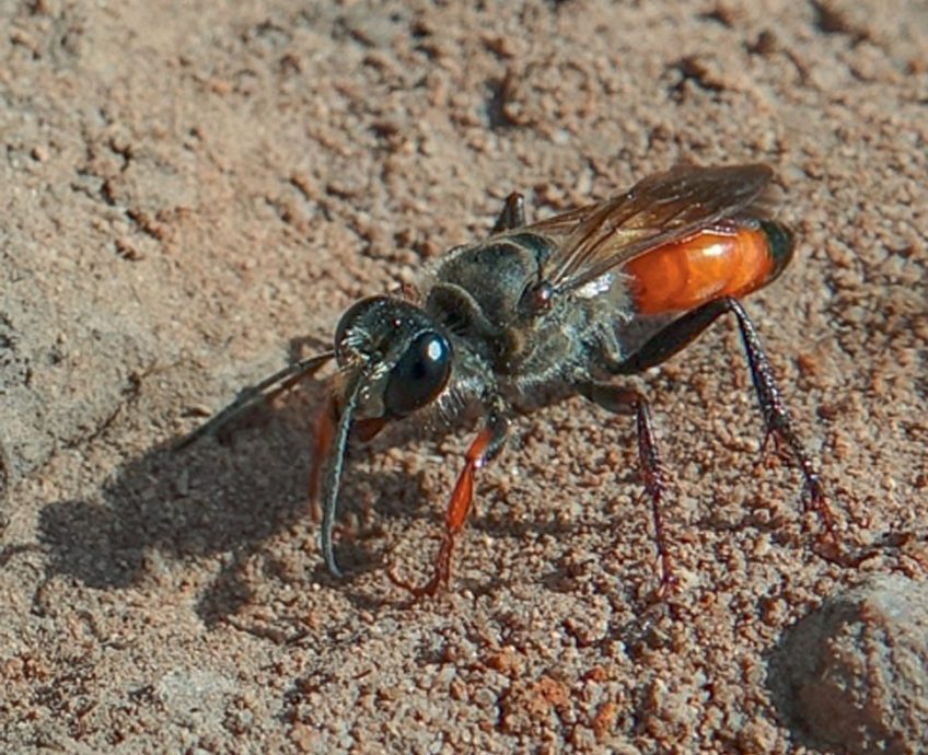 Ce trésor que l’entomologiste et ses alliés veulent absolument préserver ne paye pourtant pas de mine : un simple chemin sableux en lisière de forêt. « Il s’agit de l’une des plus grandes colonies d’abeilles et de guêpes sauvages de la région. Des milliers d’individus de plusieurs espèces fascinantes », précise fièrement ce passionné d’insectes depuis l’âge de 4 ans. Un hot spot qui est d’ailleurs bien connu des porteurs de loupe et des associations environnementales. Parmi les bêtes stars du lieu, Andrena vaga, une abeille des sables, Bembix rostrata, une guêpe fouisseuse, ou Sphex funerarius, une guêpe chasseresse capable de capturer des grillons.