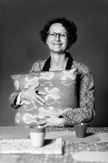 D’une marmite de teinture fumante, Catherine de Robert extrait de petits paquets faits de tissus, de plantes et d’objets métalliques étroitement ajustés. Quels motifs et couleurs vont-ils révéler une fois déballés ?