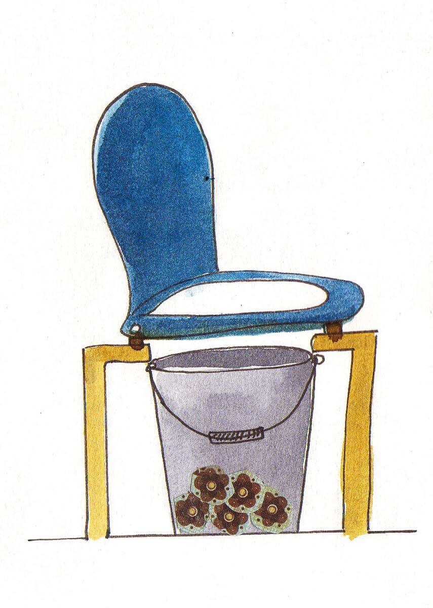 A la portée des bricoleurs, la toilette à litière biomaîtrisée (TLB) ou plus simplement « toilettes à sciure » est le modèle le plus simple et le moins coûteux à mettre en place. Il est composé de deux éléments : un caisson sur lequel on s’assied et un seau – de préférence en inox – d’une quinzaine de litres où sont recueillis les excréments. Une caisse de litière et une petite pelle complètent l’installation. Une fois par semaine, les usagers vident le seau sur le compost du jardin où la maturation se poursuivra naturellement. « Il existe aussi des modèles avec lunette séparatrice qui séparent les crottes et les urines à la source. Cela permet d’utiliser moins de copeaux et d’avoir à vider le seau moins souvent. Mais les hommes doivent apprendre à uriner assis ! » sourit Emmanuelle Bigot. Les urines sont alors stockées séparément ou envoyées directement dans une conduite d’évacuation des eaux usées.