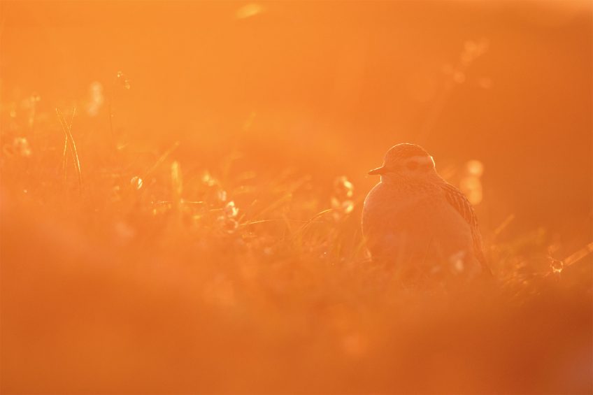 Après une nuit de clair de lune, j’ai eu la chance de découvrir deux pluviers guignards sur un sommet du Jura. Tandis que l’un se lissait les plumes, l’autre se réchauffait dans les premiers rayons du soleil avant de se mettre en chasse d’insectes.