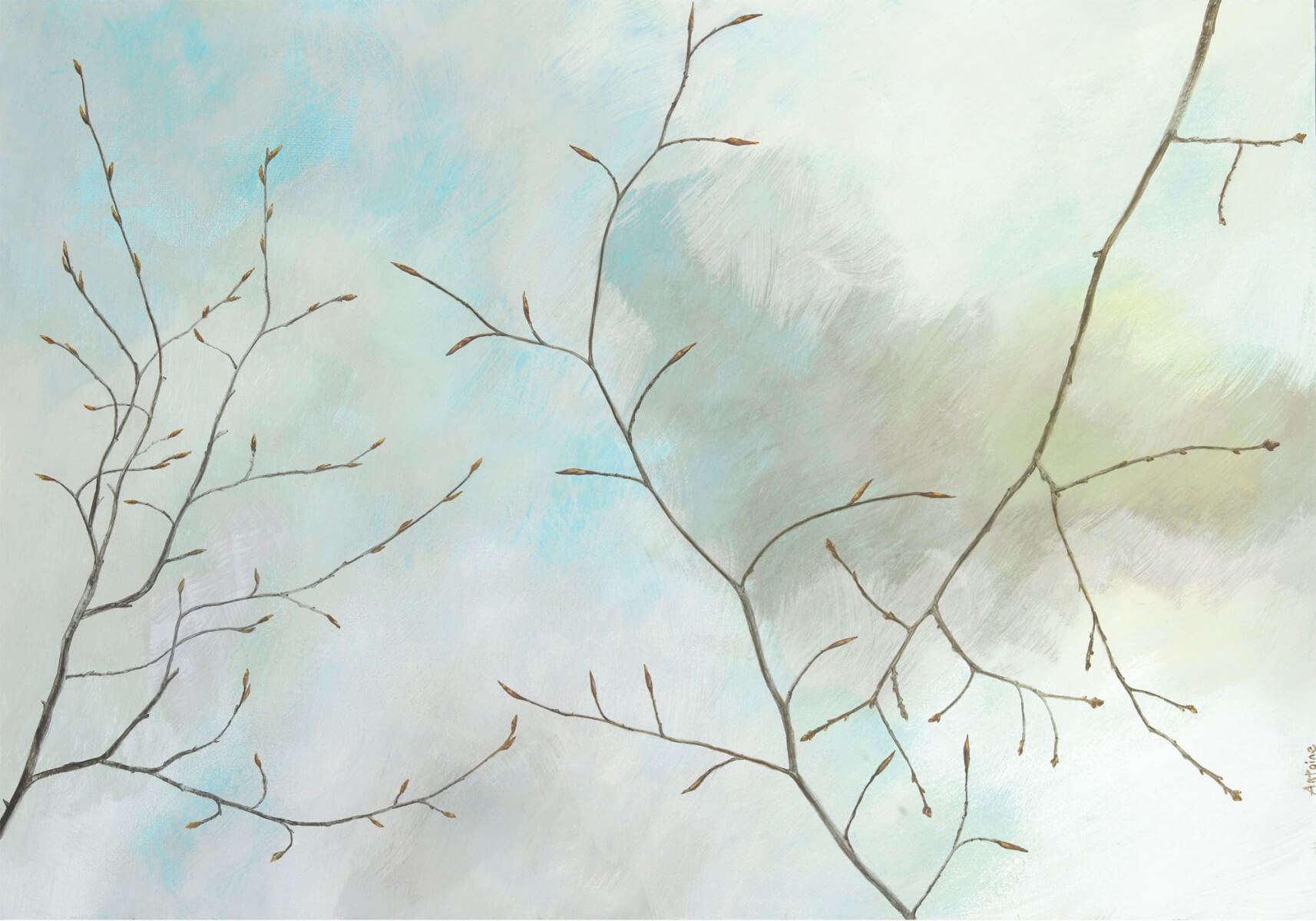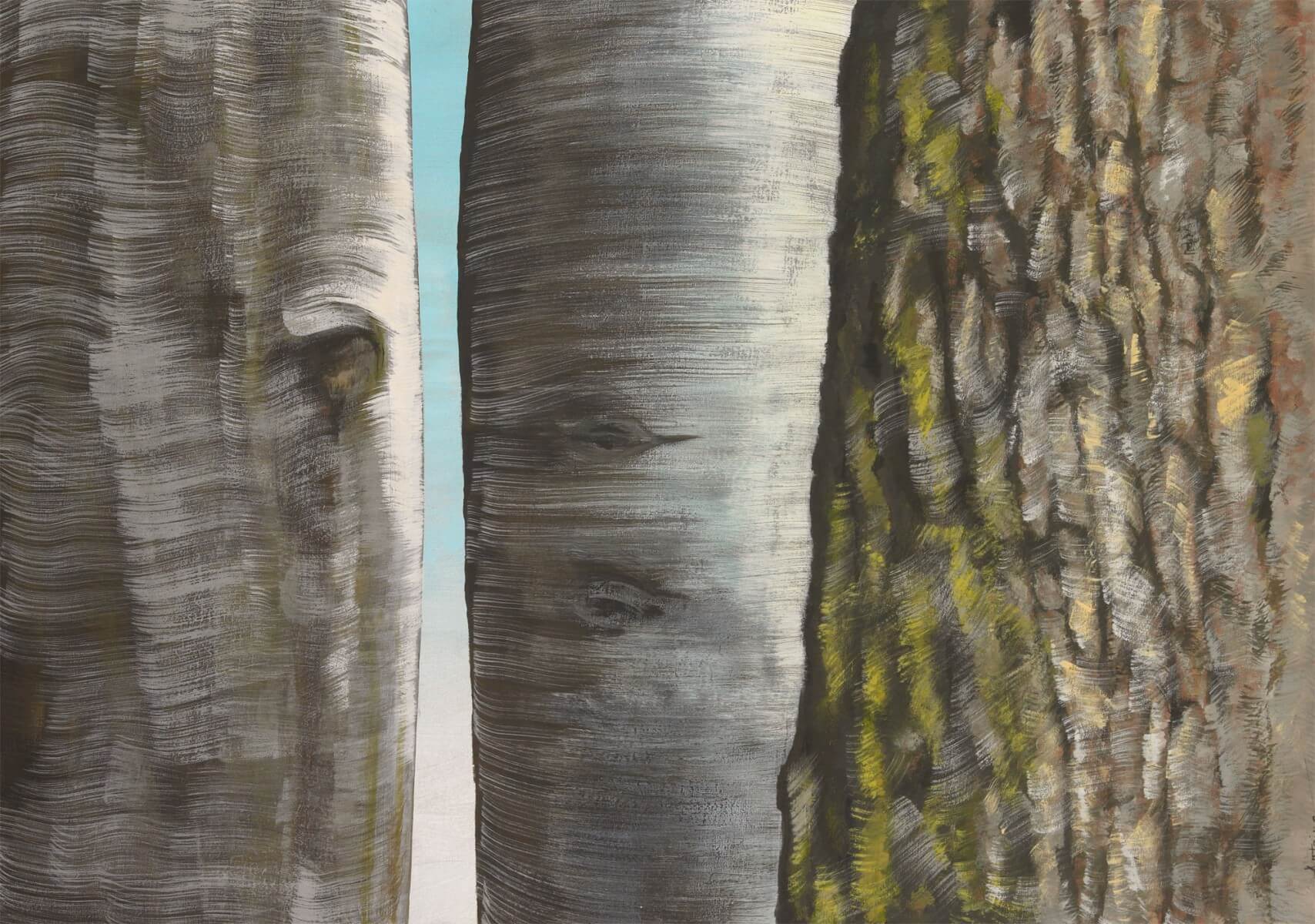 Hêtre, charme et chêne, c'est eux qu'Antoine Richard a choisi de rencontrer. Ou est-ce l'inverse ? Qu'importe ! Entre l'artiste et les végétaux, le dialogue s'est installé avec au bout des pinceaux un mélange de caséine, de poudre de marbre, d'huile de lin et de pigments.