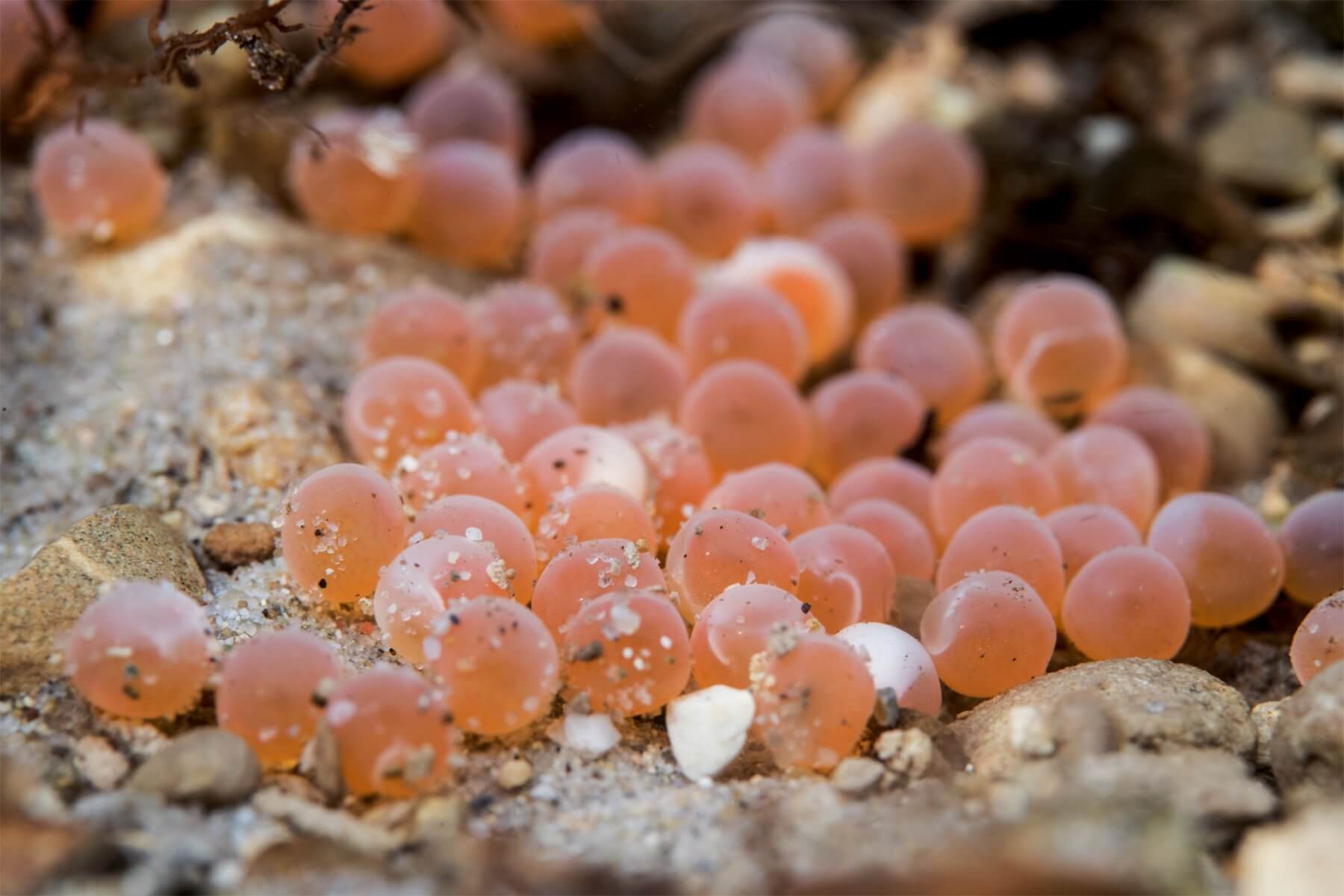 Aguiché par les hormones lâchées par sa muse, le mâle ne perd pas une miette de la scène et talonne sa partenaire tout en tenant à distance les autres concurrents. A ce jeu-là, le plus gros est souvent le vainqueur et a le droit de répandre sa semence à l’instant même où la femelle éjecte ses ovules.