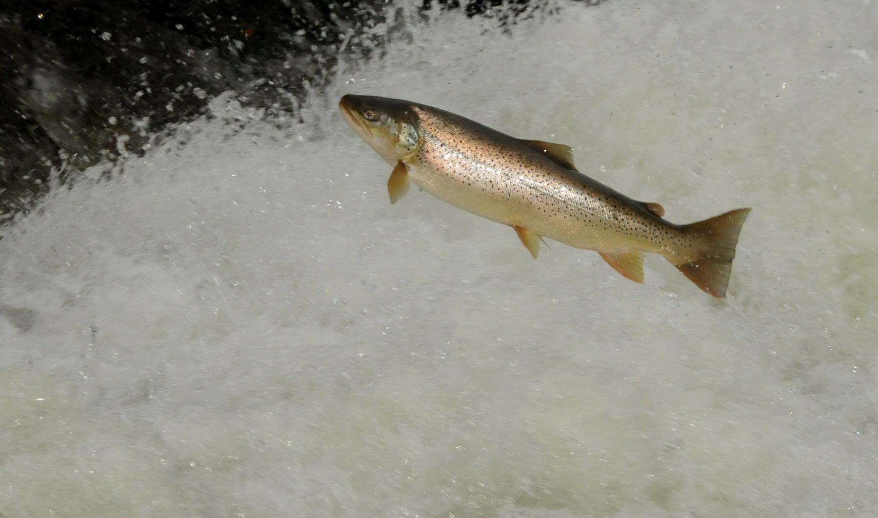 En remontant les rivières pour y frayer, les truites lacustres sautent par-dessus les obstacles comme des saumons. Du grand spectacle !