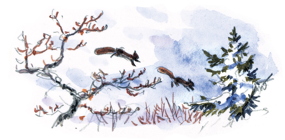Dessins NatureLa martre et l’autour, ennemis jurés de l’écureuil