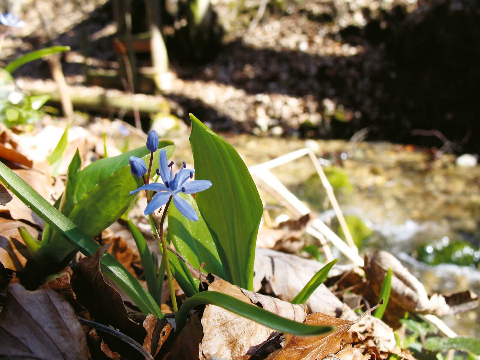 De grosses têtes de paille se mirent dans l’eau brune. J’imagine dans les touffes de carex un conciliabule de sorciers africains, discutant de la température de l’eau, du grincement des arbres ou du printemps qui arrive. Les tapotements d’un grimpereau sur une écorce me ramènent à la réalité et je poursuis mon chemin entre chênes tortueux, étangs sombres et ruisseaux pressés. Le relief est imprévisible. Je monte, je descends, je tourne. J’hésite et me perds avec délice dans ce mouchoir de poche brodé de scilles, de primevères et d’hépatiques.