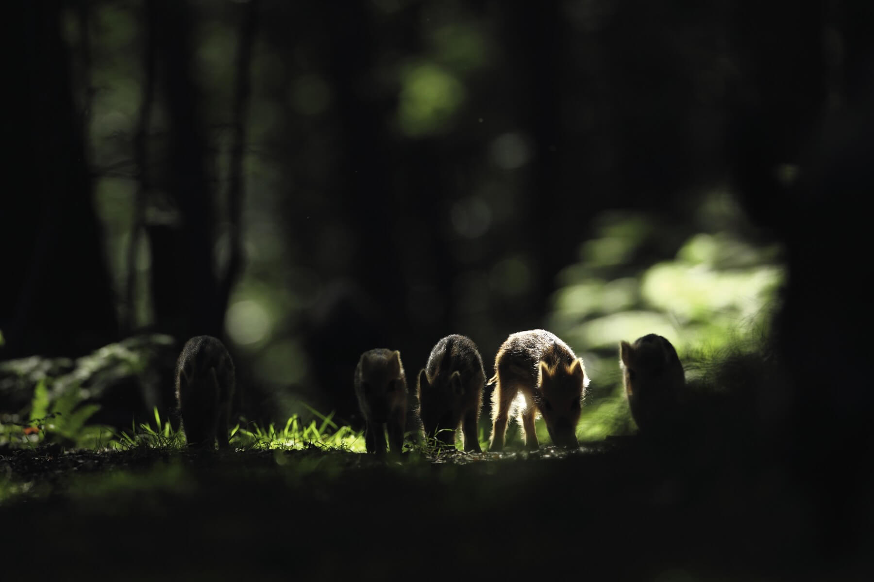 Le photographe Christophe Salin a compté juste. Quatre mois après avoir été le témoin d’un flirt furtif entre sangliers, il a trouvé la jeune tribu de marcassins. Récit à l’ombre des fougères.