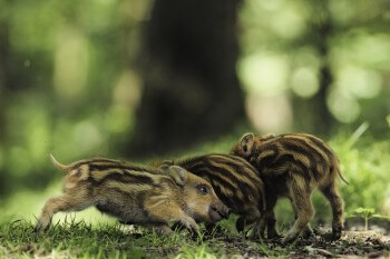 Dès leur naissance, les marcassins ont les yeux ouverts et se tiennent debout. Tout jeunes, ils n’ont qu’une envie : biberonner le lait riche en matière grasse de leur mère. Tous les trois quarts d’heure, ils tètent pendant quelques minutes. A partir de la quatrième semaine, chaque marcassin s’approprie les droits d’accès à un mamelon précis. Il le monopolise avec conviction jusqu’au sevrage qui surviendra deux mois plus tard.