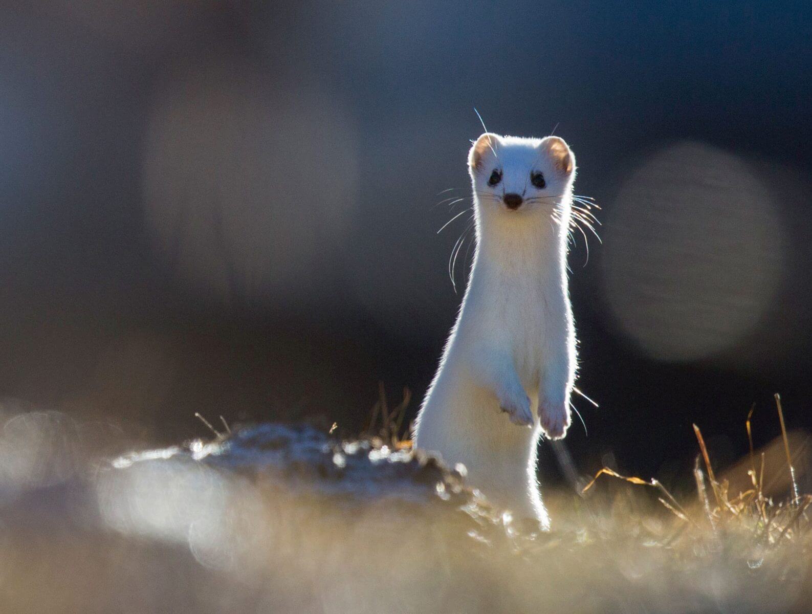 Comme sa cousine la belette, l’hermine est longiligne. Cette morphologie lui permet de se faufiler dans les pierriers ou de poursuivre les campagnols dans leurs galeries. Si cette redoutable prédatrice chasse volontiers les micromammifères de nuit, elle est tout aussi active le jour, ce qui permet de bien l’observer. Menu et ne dépassant pas la trentaine de centimètres sans la queue, le mustélidé finit dans l’assiette d’autres prédateurs tels que le renard, la buse variable, l’aigle royal ou le hibou grand-duc.