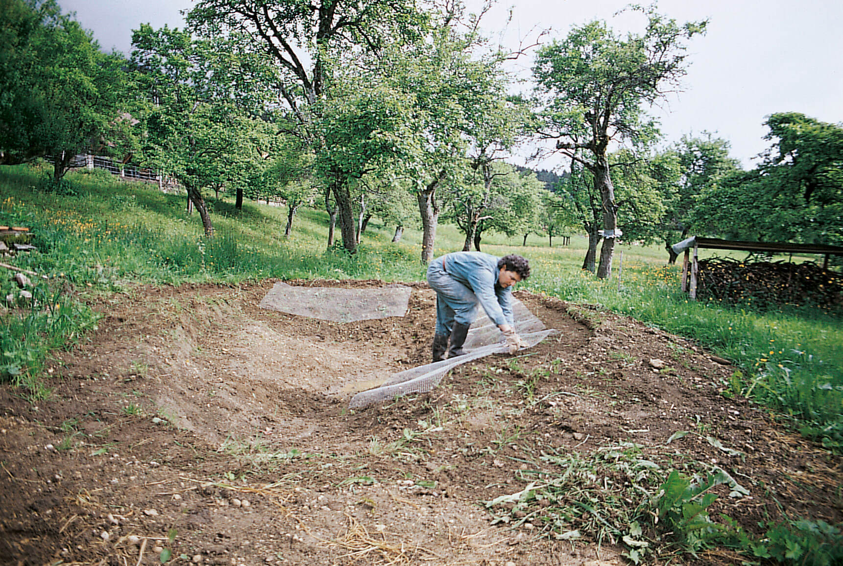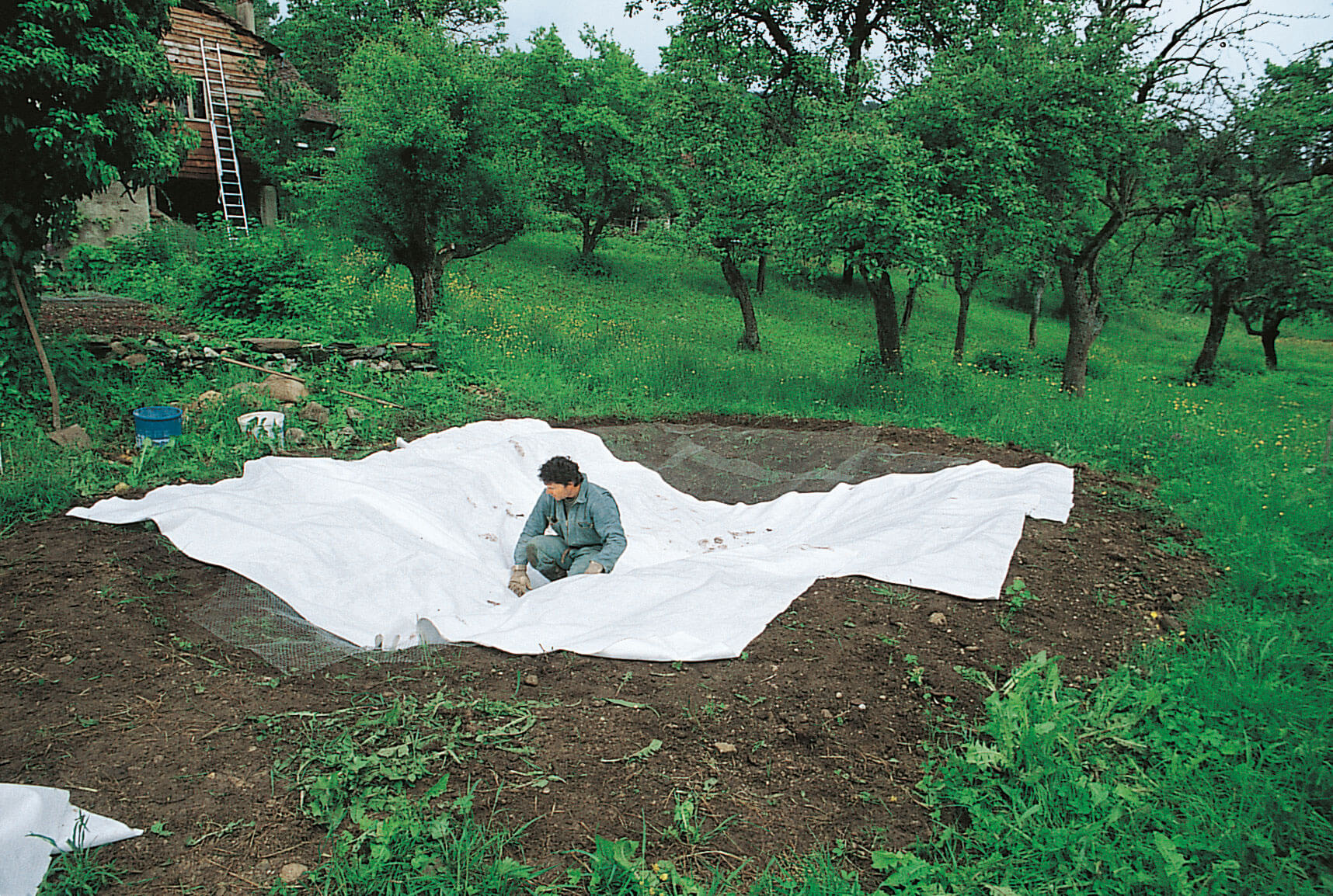 Si le terrain n’est pas naturellement imperméable, on peut imperméabiliser le fond du trou avec une épaisse couche d’argile ou de chaux. La technique la plus simple consiste toutefois à poser une bâche en polyéthylène prévue à cet effet (garantie 10 ans). Evitez absolument le PVC, très polluant lors de son élimination. Sous la bâche, disposer: