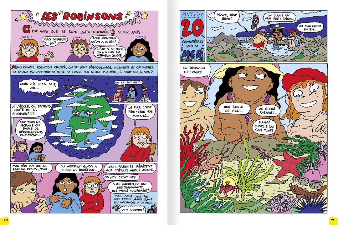 Fred Bernard et Émilie Clarke donnent vie aux Robinsons, trois enfants curieux de nature et avides d’aventures. Entre souvenirs d’enfance et passion du vivant, les deux auteurs de cette nouvelle BD partagent leur regard complice sur la nature… et sur ce qui les inspire à émerveiller les lecteurs et lectrices de la Salamandre Junior de 8-12 ans.