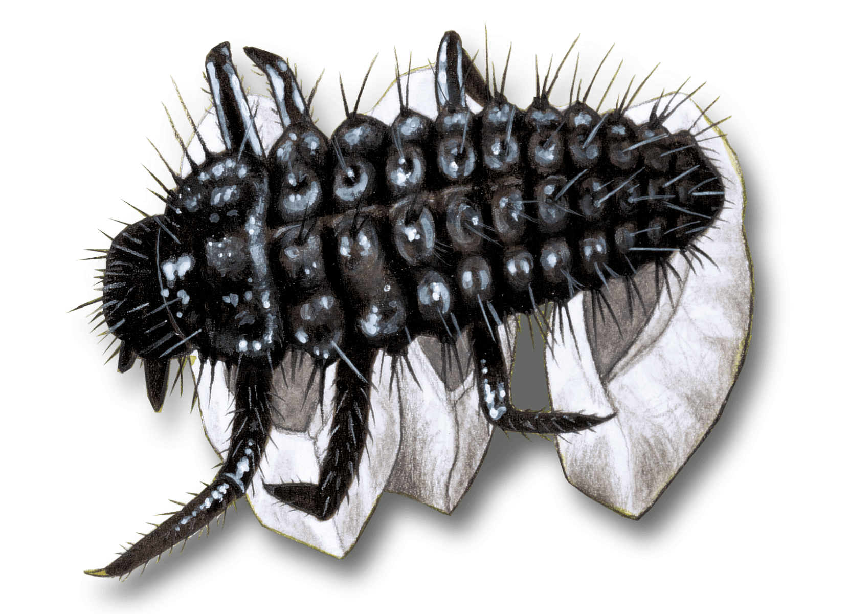 Les larves allongées sont poilues et munies de deux redoutables crochets qui encadrent la bouche. Elles ne pensent qu’à une seule chose : manger environ 150 pucerons par jour.