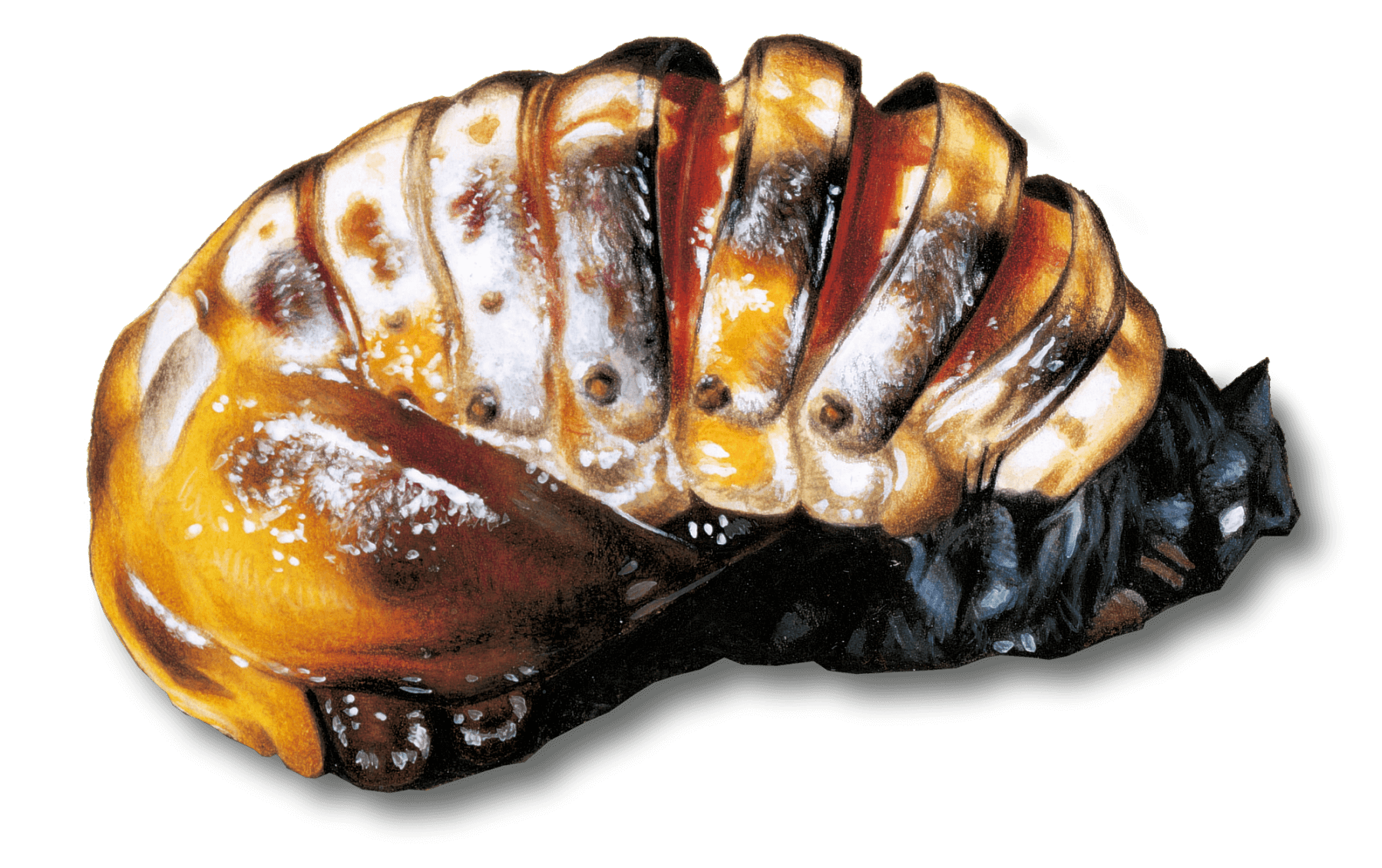 Puis un jour, la larve cesse de se nourrir. Elle se fige et change encore une fois de peau pour devenir une nymphe. On dirait qu'elle est morte, mais en réalité la métamorphose est en cours.
