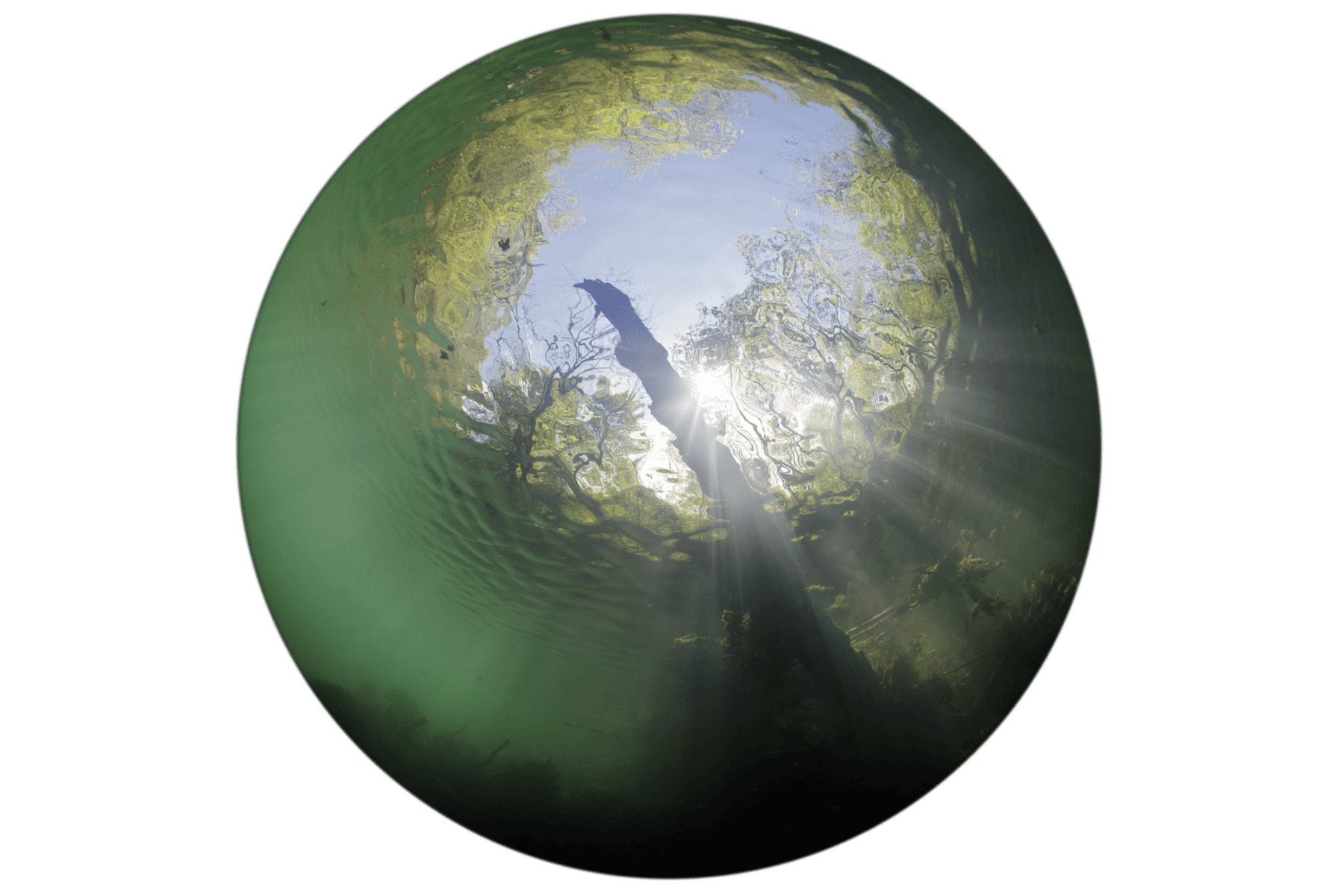 Pour commencer ses conférences, Michel Roggo rêvait d'une image qui illustre sa planète à lui, l'univers aquatique qu'il explore depuis trente ans. Un jour, il monte un objectif 8 mm fish-eye sur l'un de ses boîtiers. Ce grand-angle extrême déforme l'image en rond et crée un univers sphérique, comme une bulle de vie cadrée par le photographe. « Je vais encore en faire d'autres. Pourquoi pas mars, une planète rouge saisie dans l'eau trouble d'une tourbière ? »