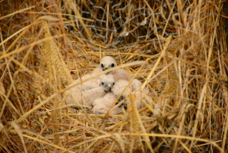 Parfois, la protection n’étant pas possible dans certaines parcelles agricoles, les œufs sont récupérés avant la récolte et envoyés en centre de soin où ils sont mis en incubation. Les poussins sont ensuite élevés durant plusieurs semaines avant de rejoindre une volière installée sur des sites naturels (friches) où l’espèce nichait historiquement. Les jeunes y sont alors nourries deux fois par jours par des bénévoles jusqu’à ce qu’ils soient en capacité de voler. La volière est ensuite ouverte, et le nourrissage se poursuit à l’extérieur de la volière le temps que les jeunes busards apprennent à chasser les campagnols seul.