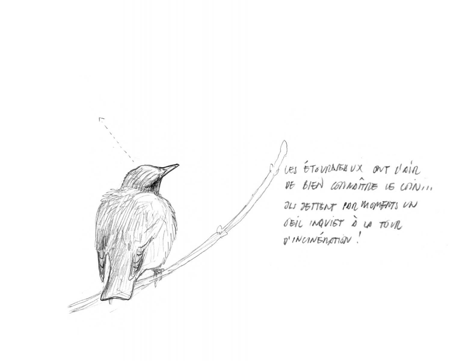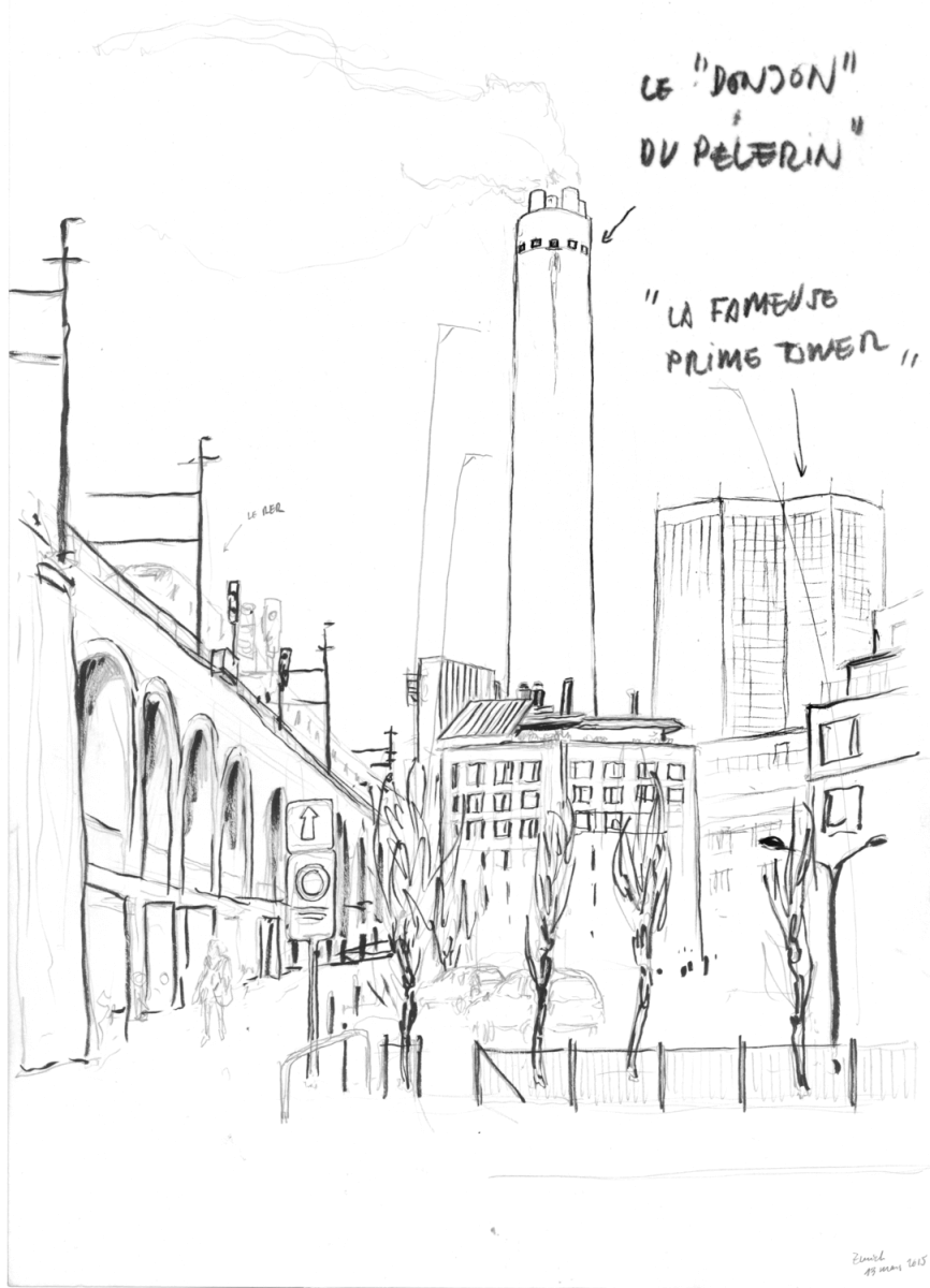 Casque obligatoire... Et c'est parti ! Jérôme Gremaud enfourche un vélo officiel de la ville de Zurich, évidemment bleu et blanc comme les armoiries locales. « Ça fait longtemps que le faucon pèlerin niche à Zurich ? » demande l'illustrateur naturaliste à Max Ruckstuhl, le responsable de la section nature de la ville. « Les deux nichoirs posés pour le Wanderfalke en 1997 ont été rapidement occupés, mais d'abord par des faucons crécerelles. Puis, en 2002, un premier couple de pèlerins a niché dans cette cheminée » , répond le biologiste en indiquant la centrale d'incinération des déchets de la Josefstrasse. Fumant comme un énorme cigare, la structure se dresse à deux pas des 36 étages de la Prime Tower , le deuxième immeuble le plus haut de Suisse. Depuis là-haut, le faucon doit avoir une vue de 360° sur l'agglomération tentaculaire.