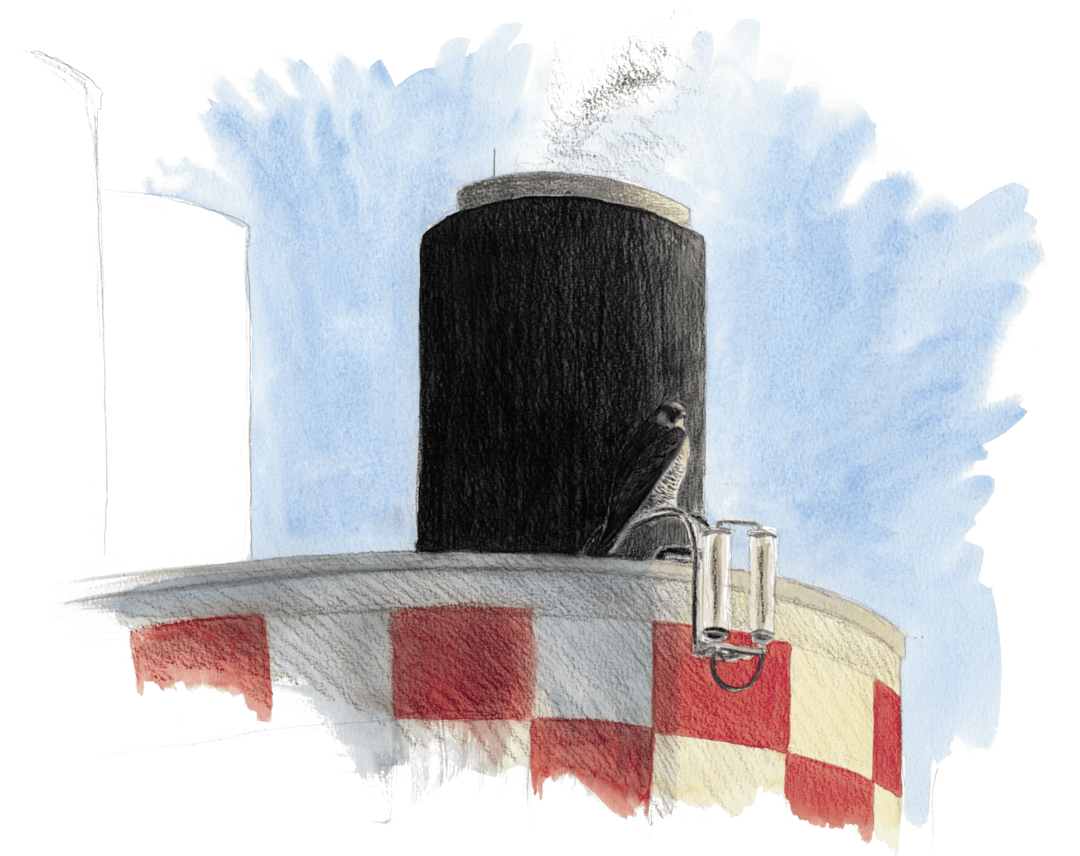 Les faucons pèlerins qui nichent sur les rives de la Limmat font la fierté des ornithologues. Reportage printanier à Zurich avec le dessinateur Jérôme Gremaud.