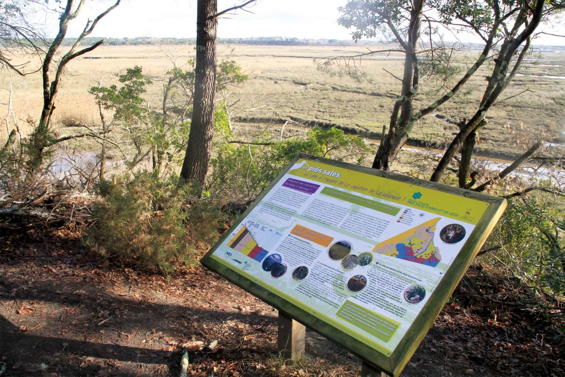 E) Réserve naturelle d'Arès-Lège « S'adresser à l'office de tourisme d'Arès ou à l'association Cap Termer, basée à la Cabane du résinier le long de la D 105. La réserve est traversée par le sentier du littoral dont il ne faut pas s'écarter, et qui donne de beaux points de vue sur les prés salés, les dunes, les roselières ou les réservoirs à poissons. »