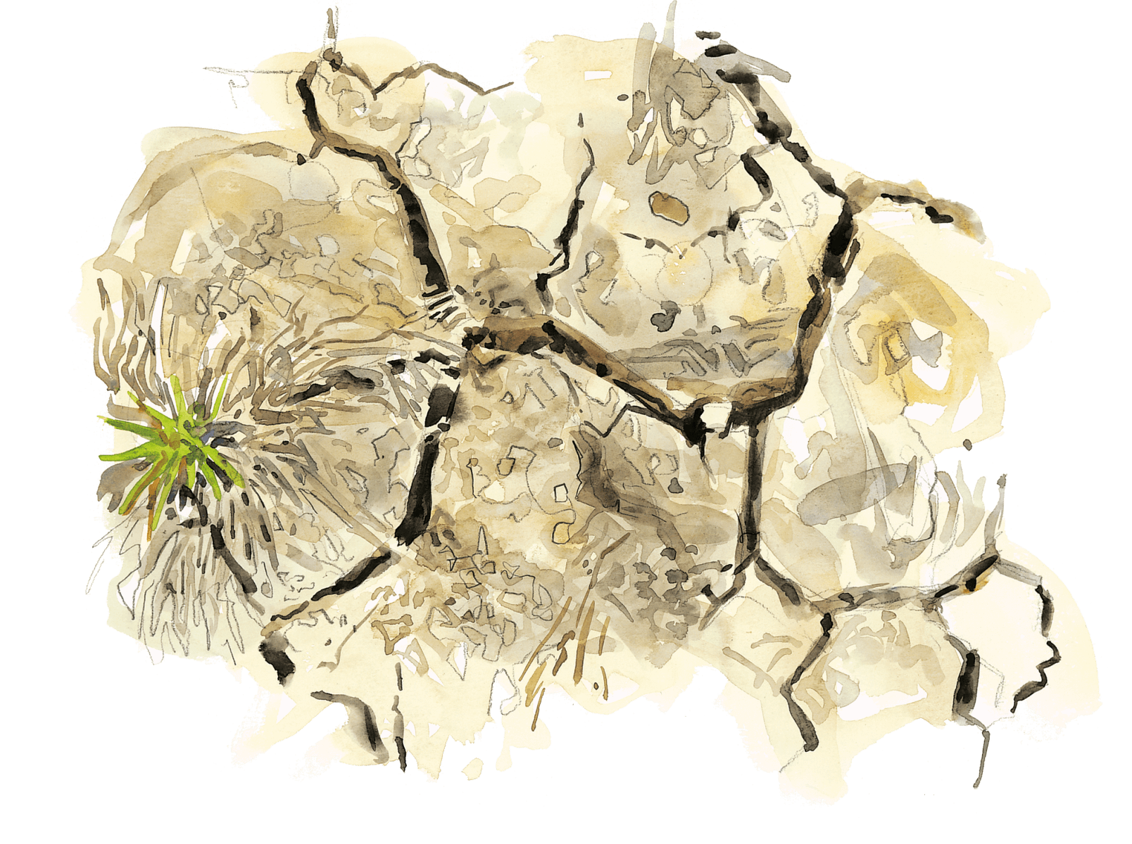 Bien qu'elle ait une prédilection pour les petites rivières, la salamandre tachetée dépose parfois après l'accouplement terrestre ses 10 à 30 larves dans des petites mares forestières suffisamment oxygénées. Peu à peu, l'eau s'infiltre dans le sol et s'évapore. De nombreuses mini-mares s'assèchent, condamnant les organismes arrivés trop tard. Ces fentes de dessiccation sont les témoins des inondations et des assèchements répétés. Les argiles du fond gercées, le temps des flaques est terminé.