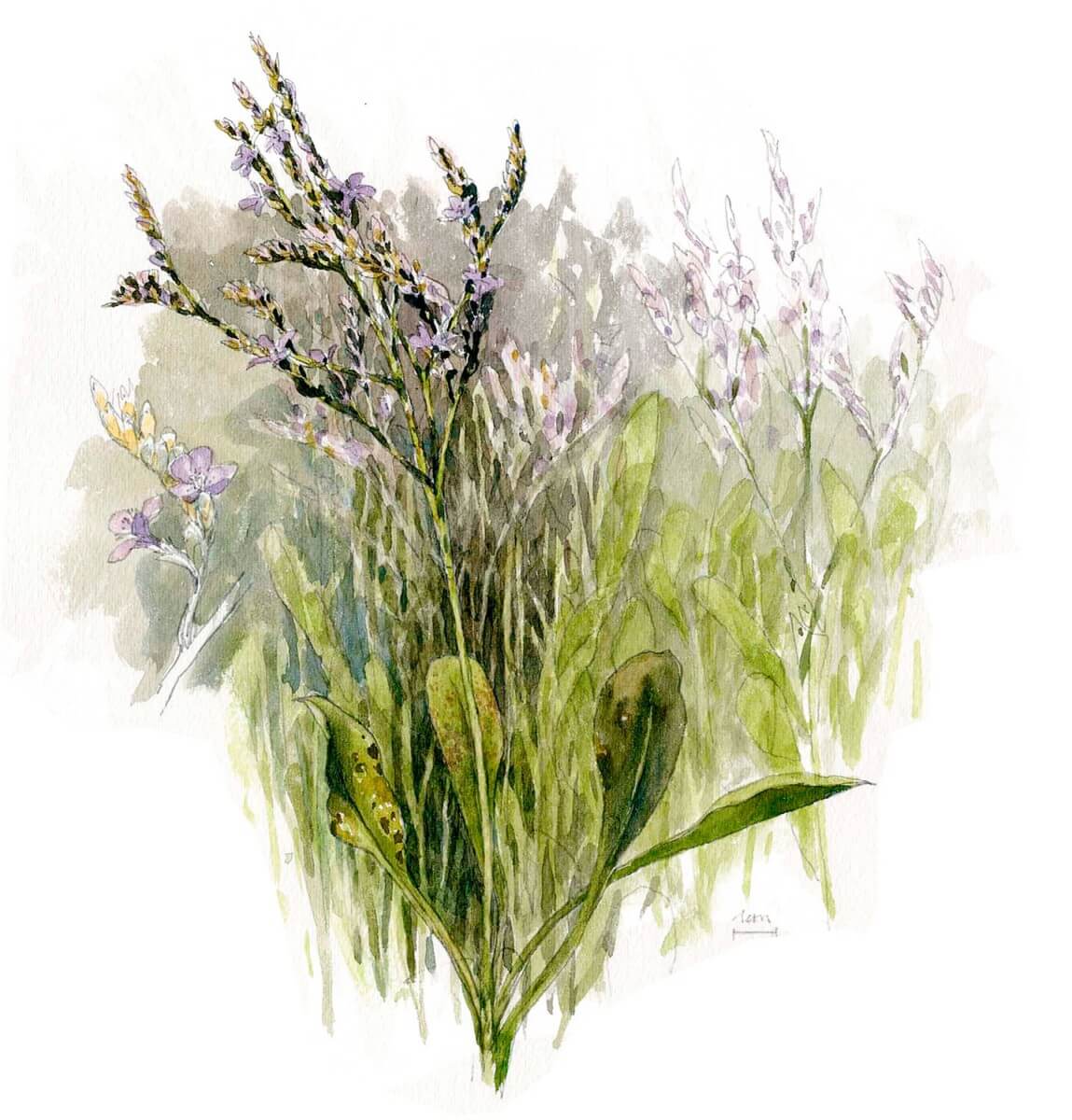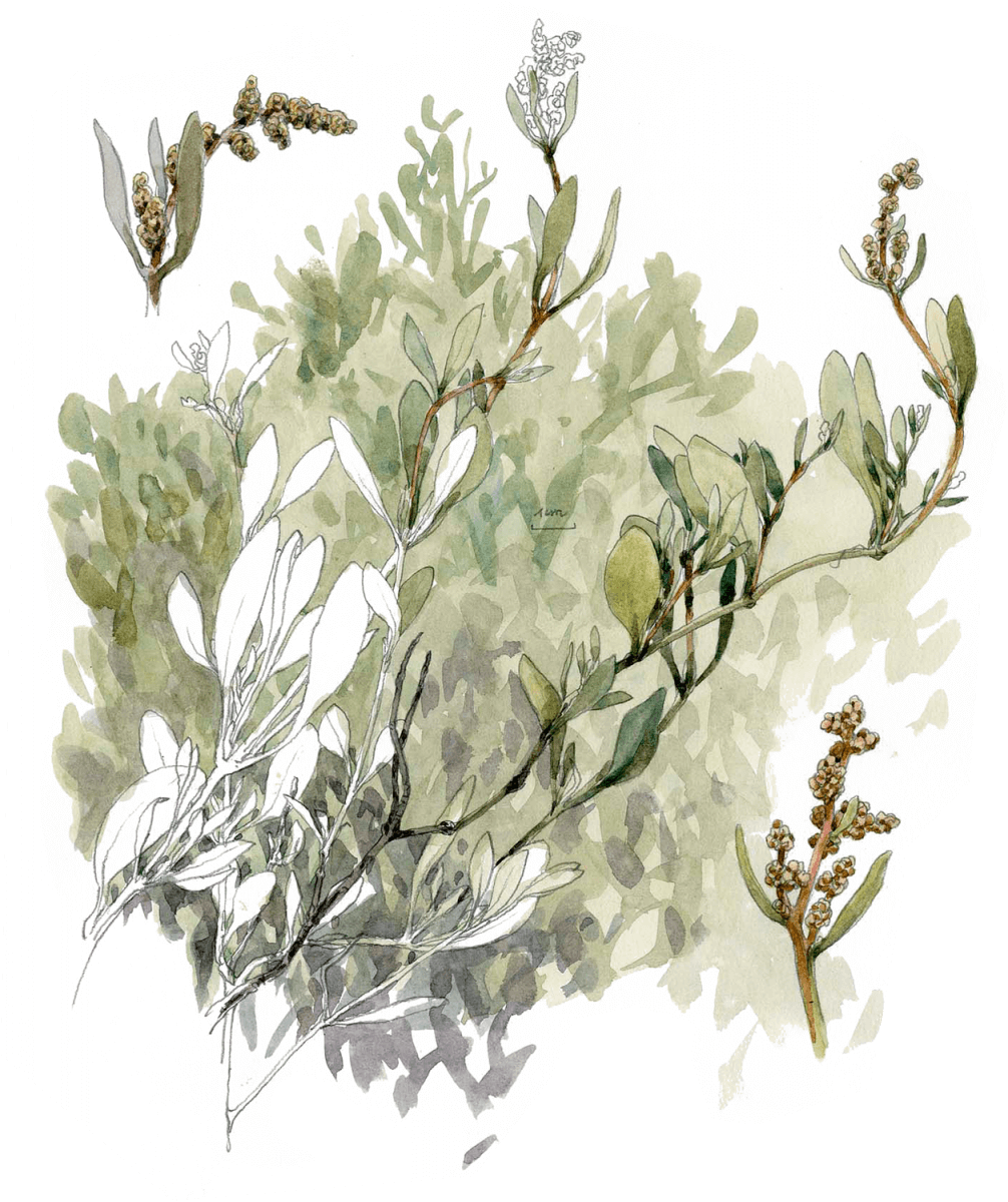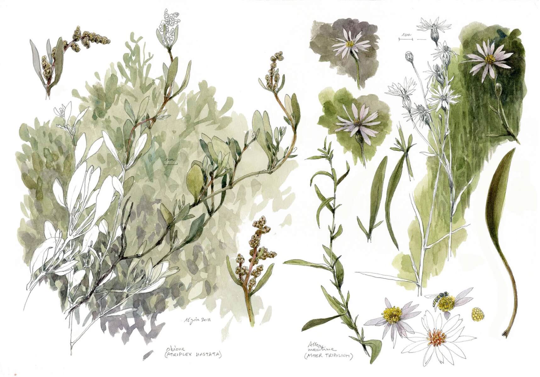 Saladelle vulgaire, scirpe maritime, obione pourpier, soude ou salicorne constituent un petit échantillon des nombreuses plantes qui profitent de l'environnement des marais ou de leur immédiate proximité. Toutes doivent faire face à la loi redoutable de l'osmose, qui peut entraîner un dessèchement mortel en présence d'une importante concentration de sel.