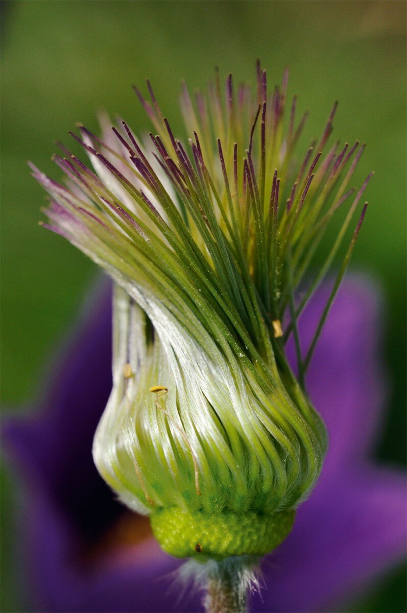 En avril, découvre-toi pulsatille. Tel pourrait être le proverbe des pelouses sèches. Adieu pétales, les fruits secs que l’on appelle akènes se torsadent et s’ornent d’attributs plumeux. La belle reste élégante même à l’heure de porter la graine. L’été est à peine né que l’anémone n’est plus. Juste le temps du bonheur pour un photographe curieux.