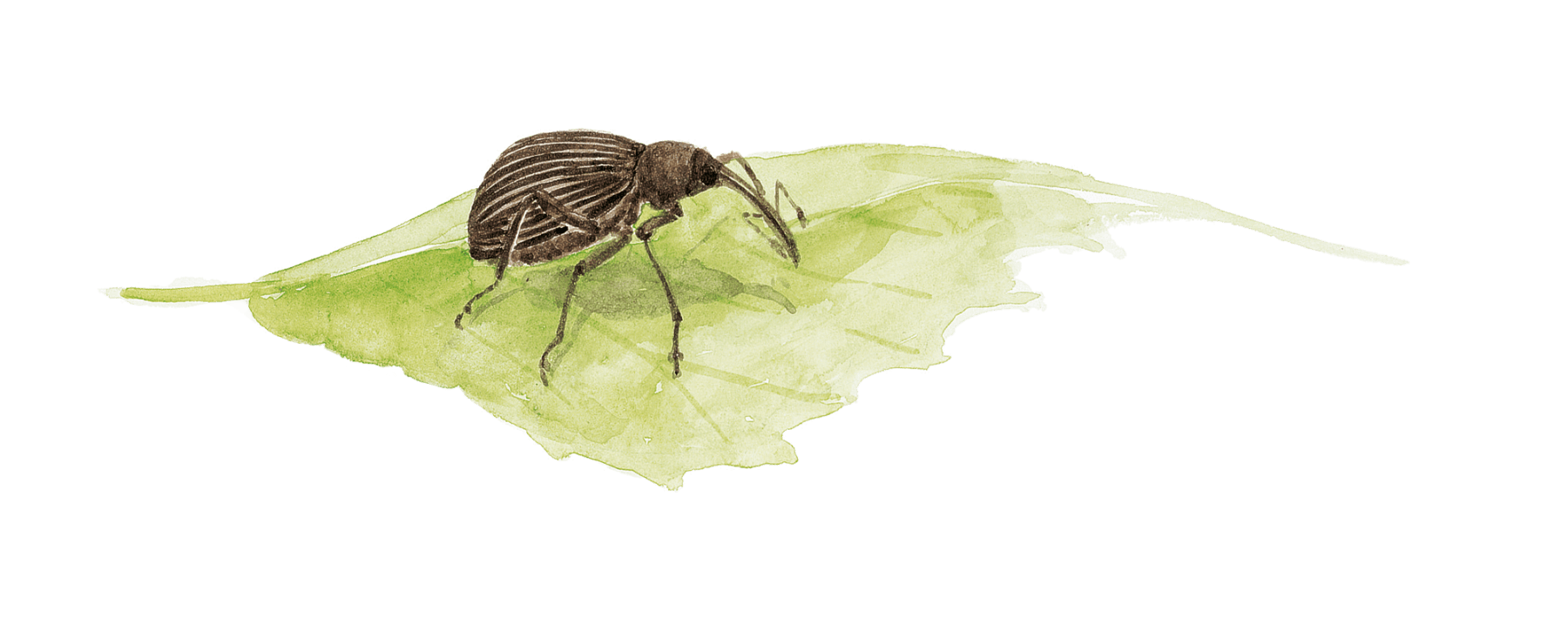 Des futures fleurs qui ne tiennent plus qu'à un fil ? L'anthonome de la ronce est passé par là ! Après avoir pondu un œuf dans le bouton floral, la femelle de ce petit charançon sectionne partiellement le pédoncule, afin de bloquer la montée de la sève. Avant que la fleur desséchée ne tombe, la larve a le temps d'engloutir les étamines et de se métamorphoser en insecte parfait.
