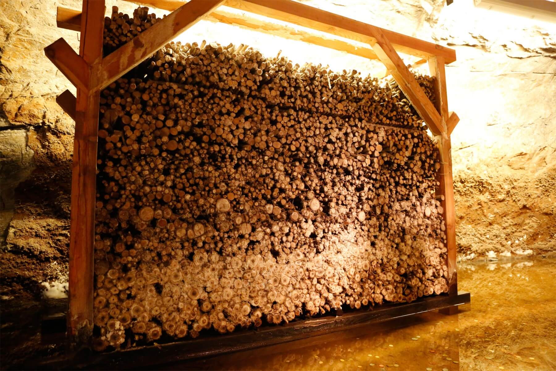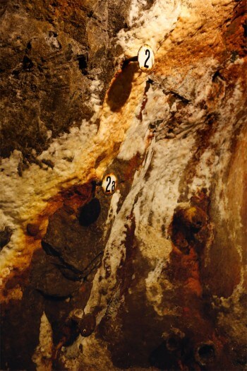 Le train a parcouru 1500 mètres dans la montagne. Il s'arrête à la gare St-Pierre creusée dans la roche. Ici, il fait 17°C toute l'année. Un silence de cathédrale. Et deux énormes réservoirs qui servaient autrefois à accumuler l'eau des sources, avant qu'elle n'accomplisse des cycles de graduation destinés à concentrer la salinité. « Le processus était long. Il fallait souvent plus d'un mois pour parvenir à un taux de 21%. On filtrait l'eau salée au travers de fagots d'épine noire empilés. L'action du vent et du soleil accentuait la salinité » , précise Alain Fiaux, 20 ans de mine et un père mineur.