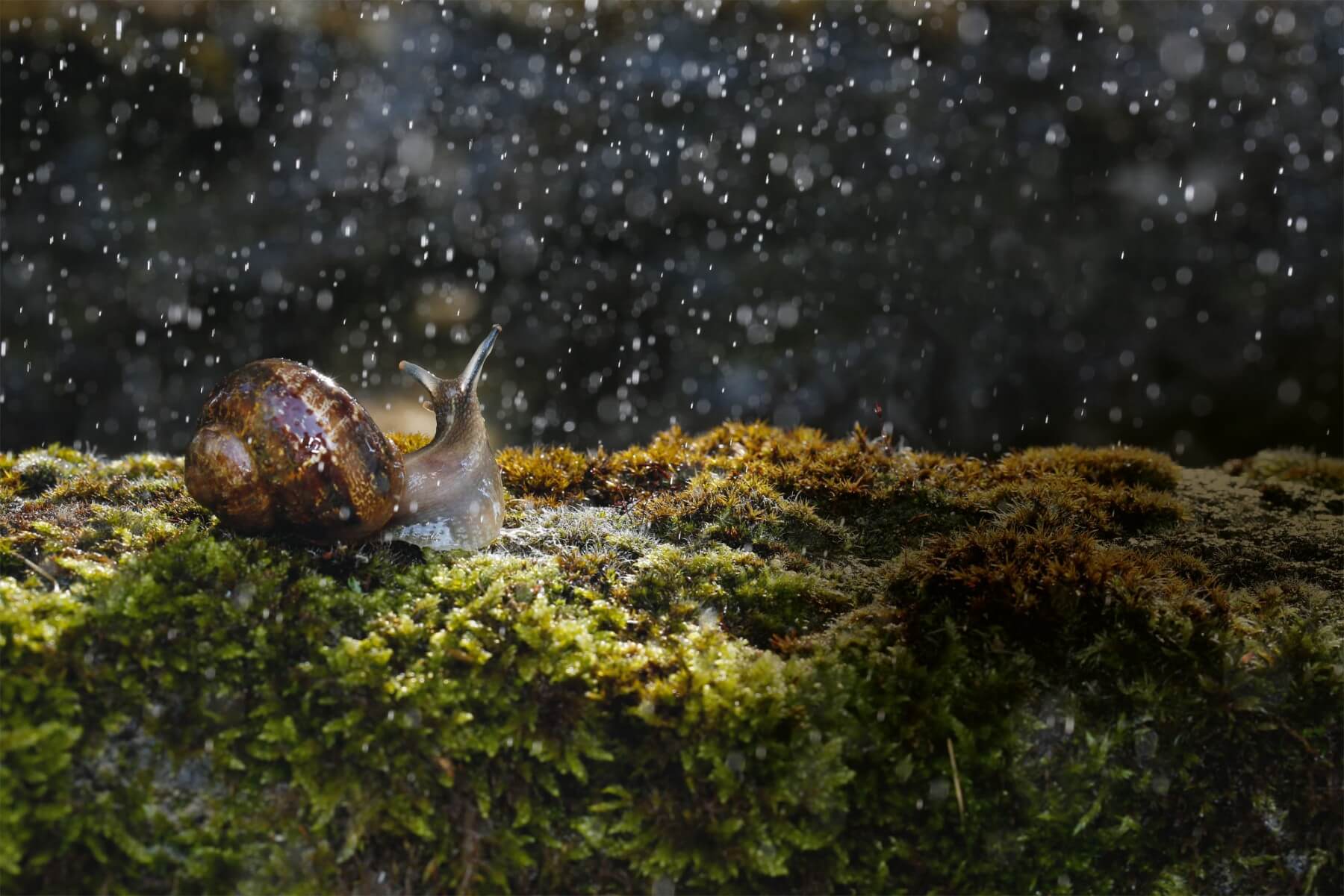 Réchauffée par le soleil d'avril, la terre frémit de partout. Les graines éclosent, les bulbes fleurissent… Et puis, à 12 °C, un petit être caché dans le sol se réveille. Imperceptiblement, il glisse ses tentacules hors de sa coquille… puis se rendort. Faux départ ! L'escargot est prêt mais il attend un second signal. Quand la pluie arrive, il sort enfin complètement de sa maisonnette et se glisse entre les mottes de terre humide jusqu'à la surface. Un long et épuisant exploit, d'autant plus qu'après sept mois sans avoir rien mangé, il a le ventre complètement vide. Vite, quelques feuilles juteuses ! Il pleut toujours, une pluie tiède et bienfaisante. Et si nous sortions nous aussi ce soir pour rencontrer les yeux dans les yeux le plus bizarre et le plus extraordinaire de nos voisins ?