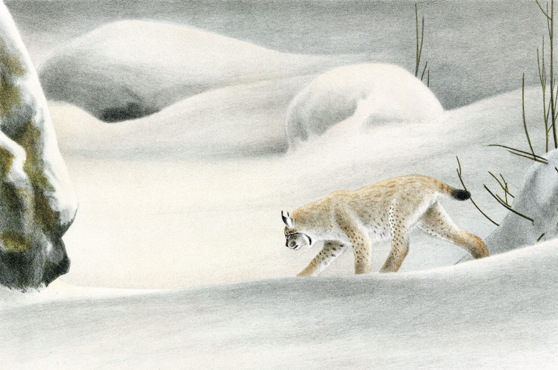 Quelques traces rondes aperçues dans la neige donnent à la forêt une dimension inattendue. Cette piste sauvage révèle la présence d'un fauve invisible qui rôde entre les grands sapins. Il connaît toutes les clairières, tous les replis de terrain, toutes les combes plongées dans un froid de cristal. Dans quelques semaines, son cri d'amour retentira sous les étoiles. Partons à la rencontre du lynx en compagnie du peintre animalier Jacques Rime.