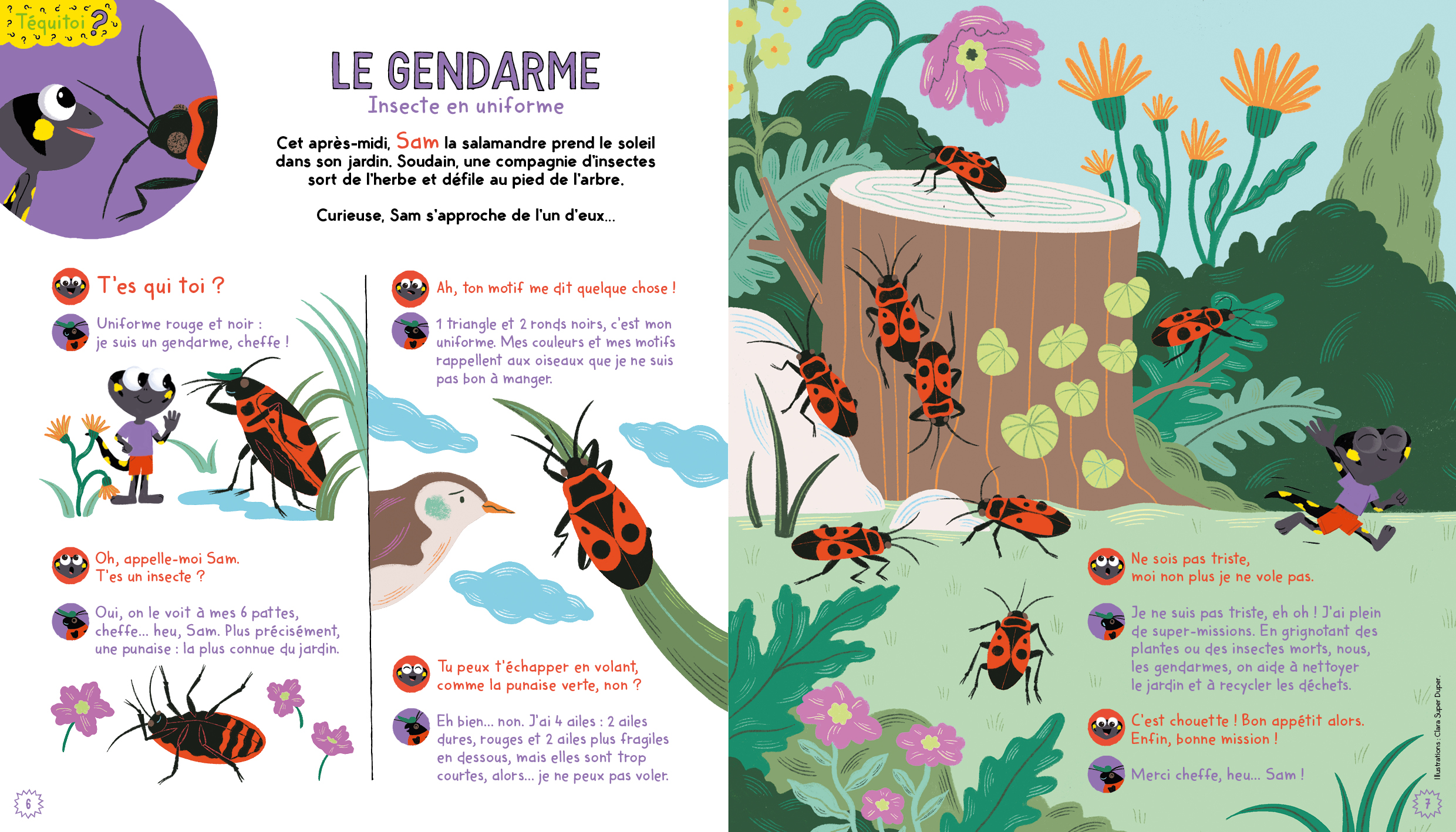 C’est une aventurière très curieuse, qui n’a pas la langue dans sa poche et questionne tous ceux qu’elle rencontre ! La petite salamandre adore rigoler et s’amuser avec les autres animaux.