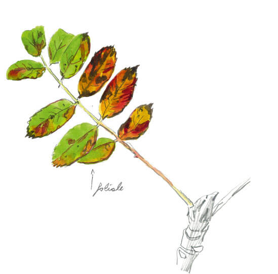 Dans son milieu naturel, on peut confondre les feuilles du sorbier des oiseleurs avec celles du frêne ou du sureau. Chez ces arbres, les feuilles sont composées de folioles. Pour les distinguer, regardez d’où les feuilles partent sur le rameau : si elles sont insérées face à face, c’est un frêne ou un sureau. Si elles sont décalées, c’est un sorbier.