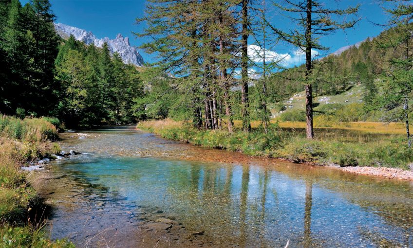 En route près de Briançon, dans les Hautes-Alpes, où la vallée de la Clarée offre une randonnée de montagne sur trois jours entre alpages, cascade et lac d'altitude.