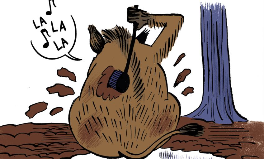 Houzures : lorsqu’un sanglier lacère un tronc d’arbre avec ses canines, il abîme l’écorce. Le tronc en garde des stries assez profondes en guise de cicatrices.