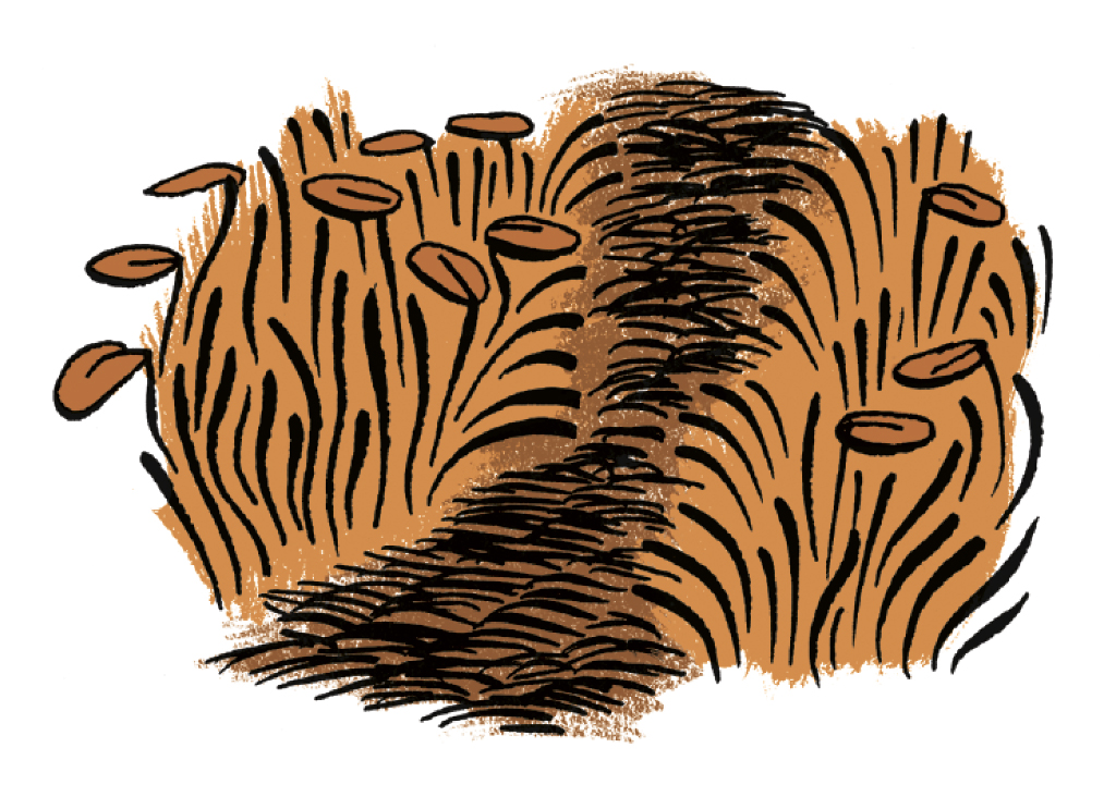 Coulées : les sangliers se déplacent en groupes, appelés compagnies, et utilisent les mêmes sentiers. Le sol y est mis à nu. Suis ces pistes pour découvrir les autres indices.