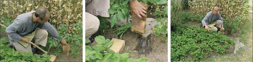 Placez le tuyau d’arrivée d’eau au point haut et ouvrez le robinet faiblement. L’eau va circuler doucement dans votre réseau d’irrigation, rafraîchissant les racines des plantes, sans mouiller leur feuillage… et sans fatigue pour vous ! Les petites vannes (de simples briquettes) vous permettront de gérer la circulation de l’eau.