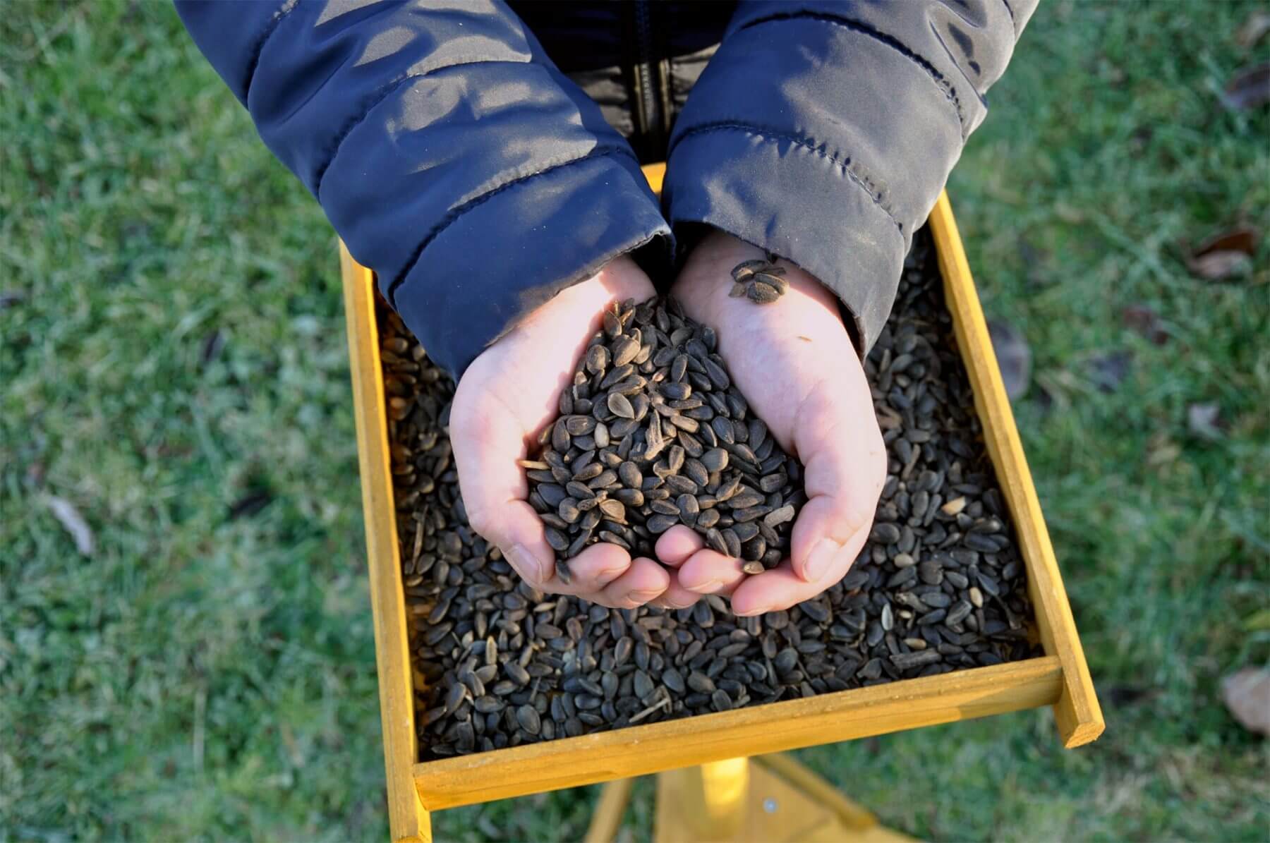Les graines de tournesol contiennent beaucoup de matières grasses et permettent aux oiseaux de lutter contre le froid. Disposez-les en petits tas sur le plateau mais aussi par terre. Certains préfèrent manger au sol comme les pinsons, les verdiers ou l’accenteur mouchet.