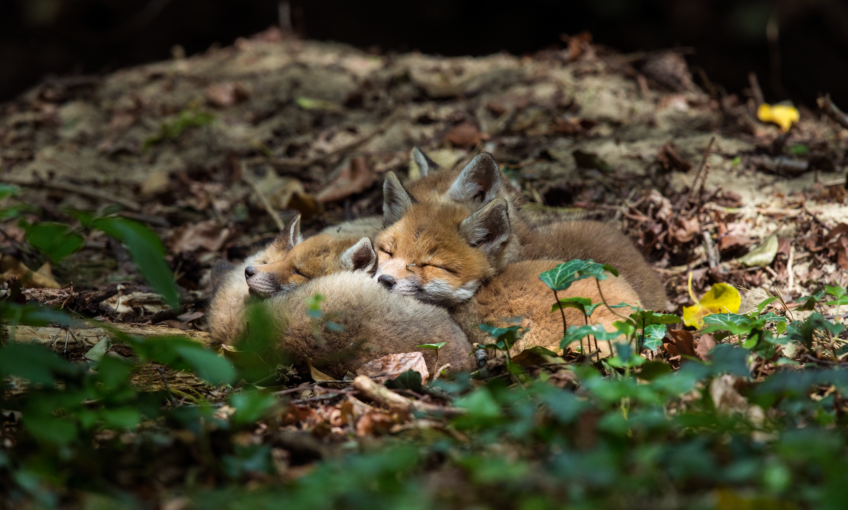 Les petits goupils insouciants entrent en scène au printemps. Assistez au spectacle en toute discrétion.