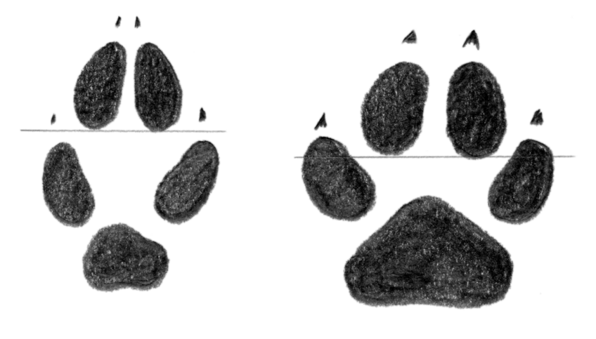 Sur le dessin ci-dessous, la patte à gauche est celle d'un renard, et celle de droite, d'un chien.
