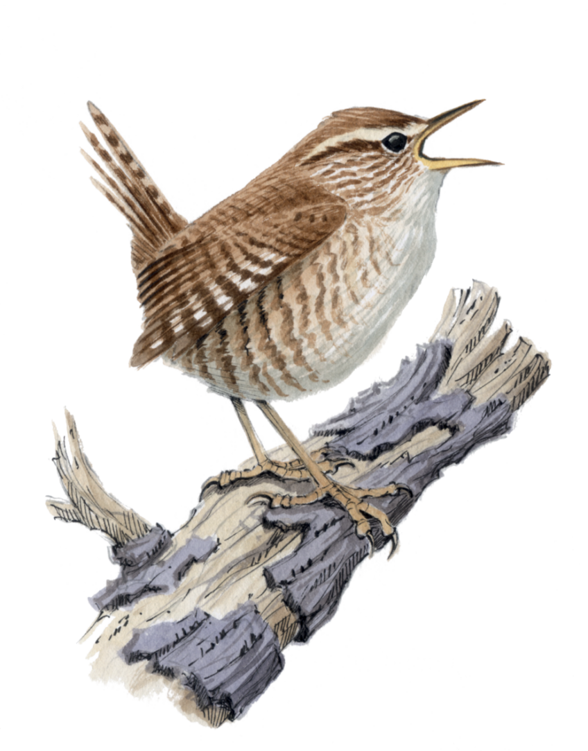 Surveillez les autres passereaux : Bien que solitaire, le furtif troglodyte est souvent actif dans le sillage des rondes d’autres passereaux. Soyez aux aguets quand une bande de mésanges anime les buissons de leurs cris de contact, notre troglo n’est peut-être pas loin.