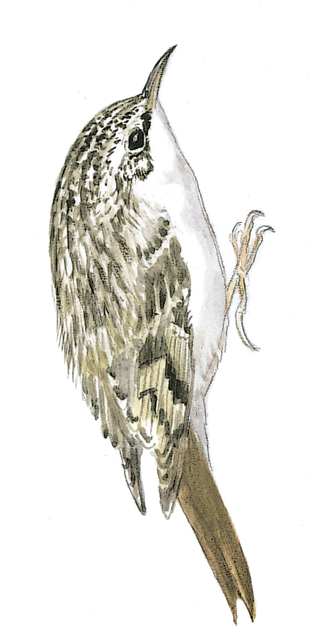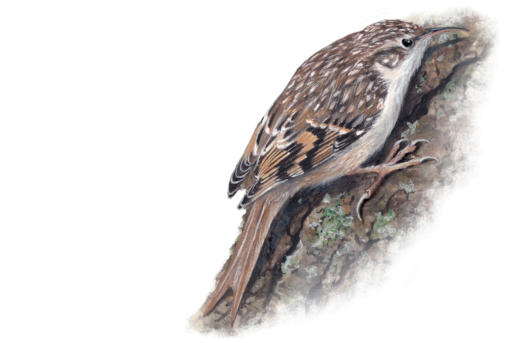 Le grimpereau des bois et son cousin le grimpereau des jardins sont d’agiles varappeurs pesant à peine 10 g. Tels de minuscules pics, ils se perchent à la verticale des troncs, campés sur leur queue et arrimés avec leurs griffes.