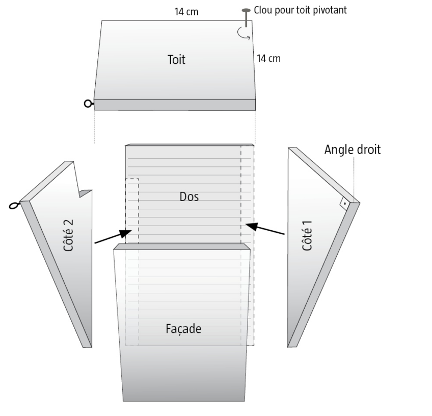 - Prenez garde à ce que les pointes de vis ne soient pas apparentes dans le nichoir.