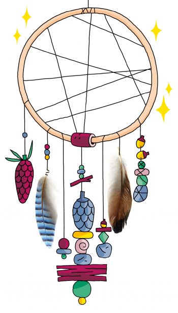 Et si tu réalisais un attrape-rêves à suspendre au-dessus de ton lit, comme le faisaient les tribus d’Indiens d’Amérique ? Finis les cauchemars !