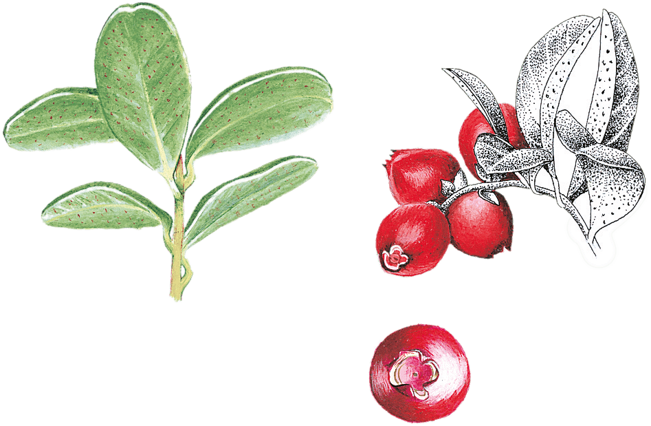 Qu'il est bon de se goinfrer de myrtilles en fin d'été dans un sous-bois de conifères, près d'une tourbière ou sur un autre terrain acide. On connaît moins l'airelle des marais à la chair farineuse et surtout l'airelle rouge qui pousse dans les landes et les forêts de montagne, volontiers entre des arolles ou des mélèzes clairsemés. Cette plante de la famille des bruyères porte des feuilles luisantes et coriaces caractéristiques, vertes en toutes saisons.