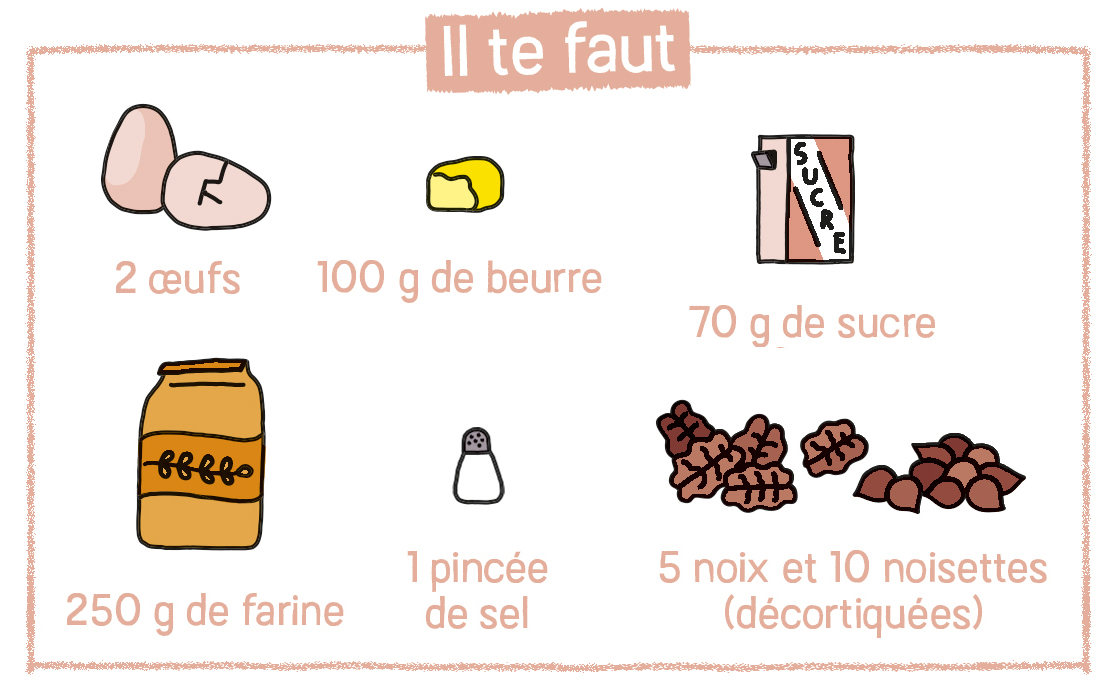 2- Ajoute la farine, remue et ta pâte est prête. Incorpores-y les noix et noisettes brisées.