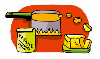 Étape 2 : Fais fondre le beurre à feu très doux et verse-le dans le saladier. Remue en incorporant la farine petit à petit jusqu’à obtenir une pâte ferme.
