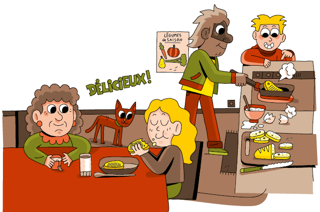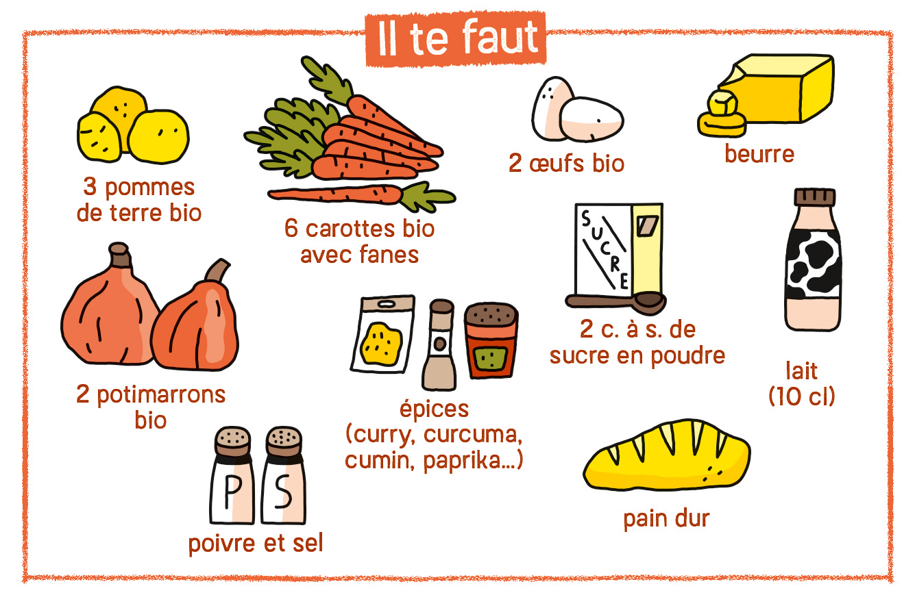 Velouté de fanes, graines de courge grillées, potimarrons rôtis, pain perdu… Réalise un repas complet sans déchet pour toute la famille. A faire avec un adulte !