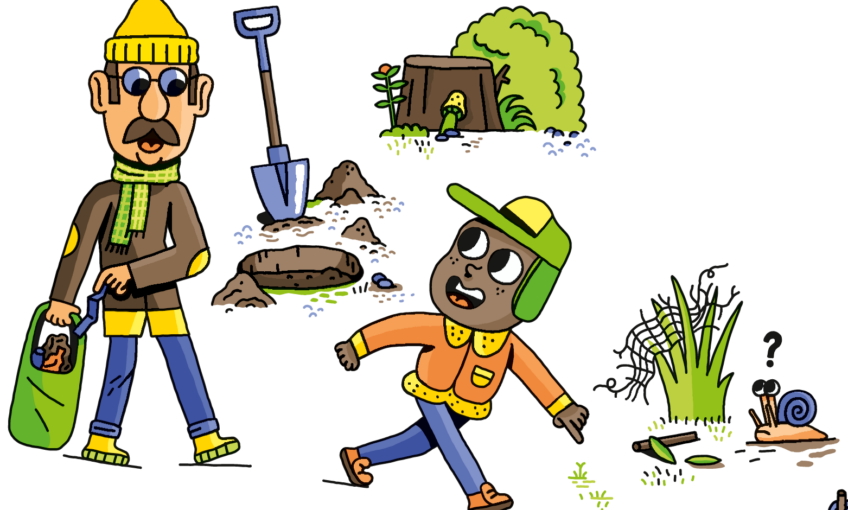 Avec un adulte, inspecte le jardin pour boucher tous les trous avec de la terre et les poteaux creux avec un morceau de bois. Mésanges et écureuils risquent de rester coincés dedans.