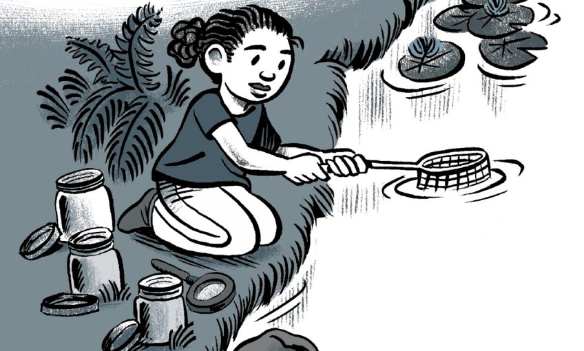 Avec une épuisette à main d’aquarium, fouille délicatement le fond de quelques petits points d’eau proches de chez toi. Fais glisser avec précaution les petites bêtes aquatiques que tu as capturées dans des bocaux en verre transparent.